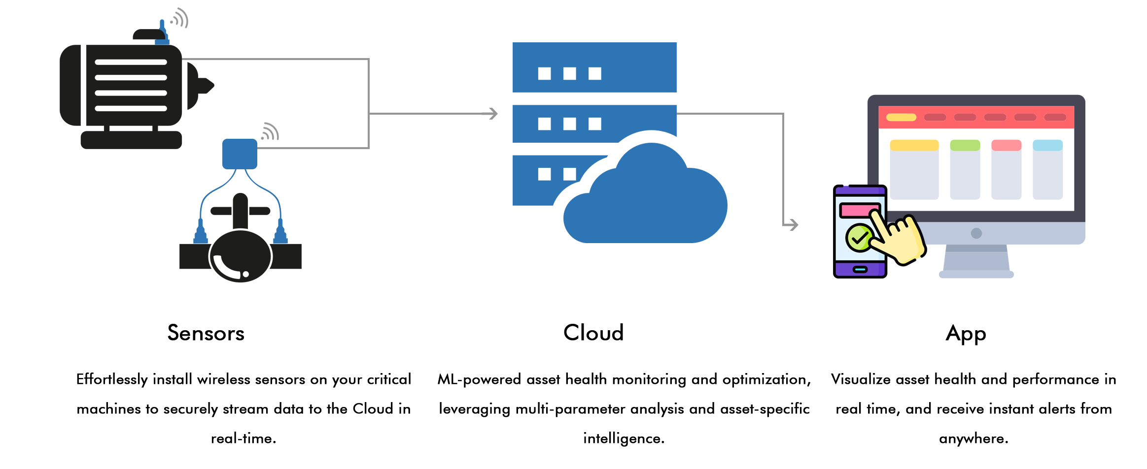 We specialize in condition monitoring systems for industrial assets that empower industries to predict failures, prevent unplanned downtime, and perform at peak efficiency. Our plug-and-play sensors and intelligent cloud diagnostics platform are engineered for simplicity, speed, and scalability.